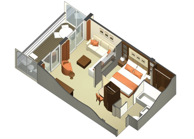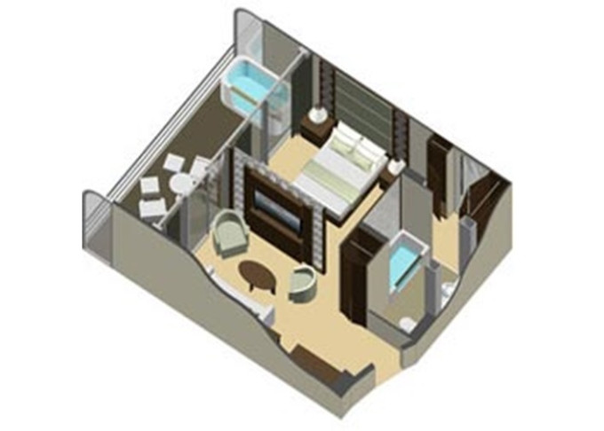 CS - Celebrity Suite 37 m² + balkón 9 m². 10,11. paluba. Max 4 osoby. Výhody Suite. | 15 164 € 3 791 € za osobu |