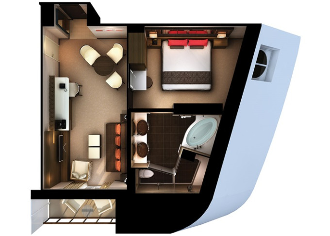 HI - The Haven Penthouse Suite 28 m² / balkón 5 m². 14. paluba - vpredu. Max 2 osoby. Výhody The Haven. | 3 418 € 1 709 € za osobu | ||