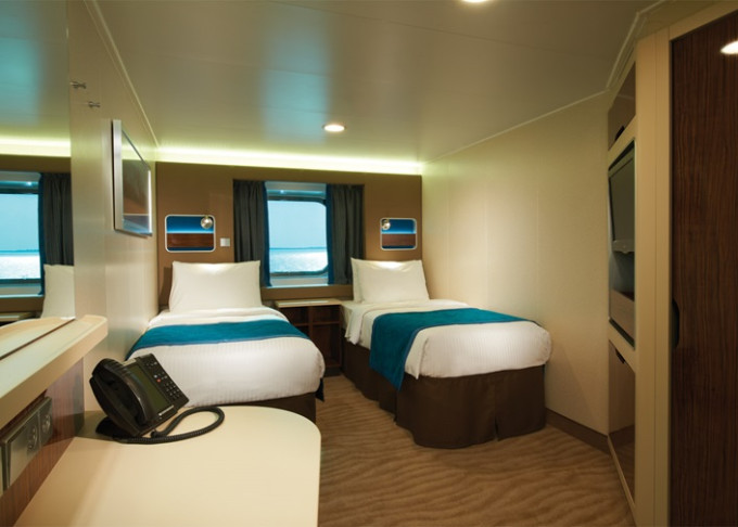 OB - Vonkajšia kajuta s veľkým oknom od 14 m². Veľké neotvárateľné okno. 5. paluba. Max 2-5 osôb. | 570 € 285 € za osobu | ||