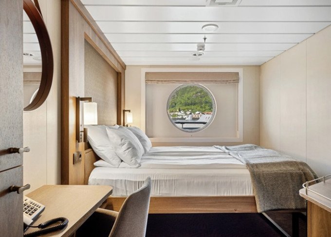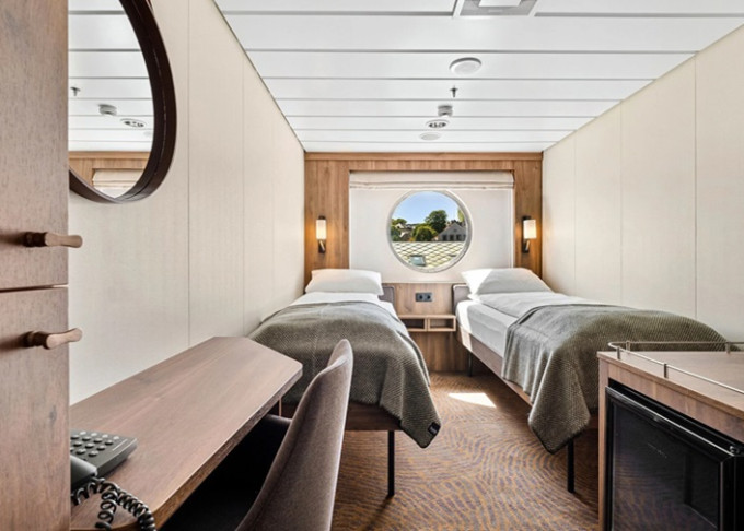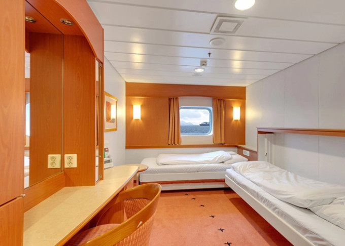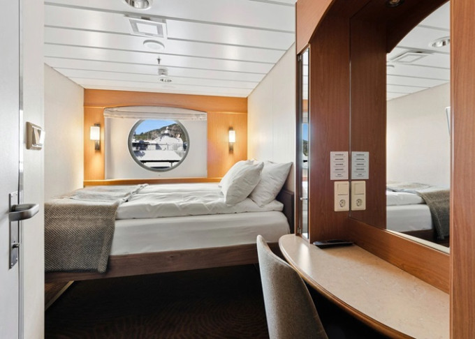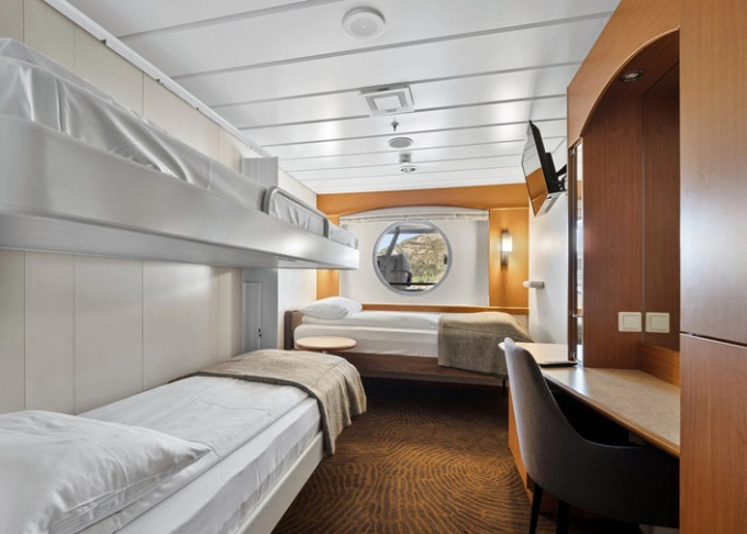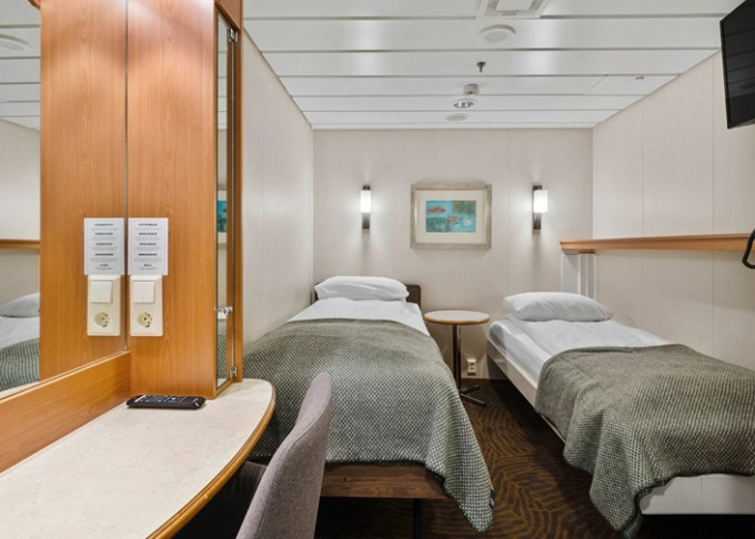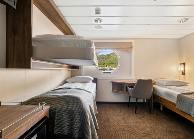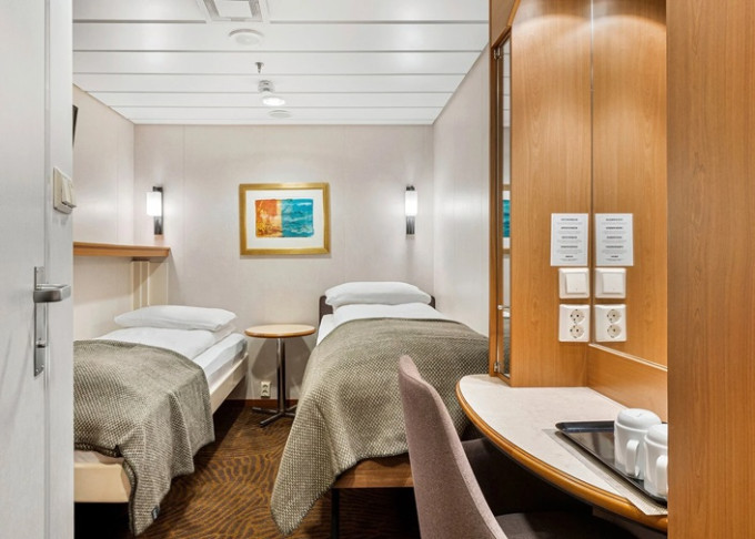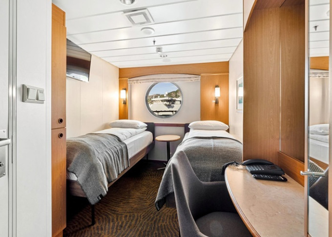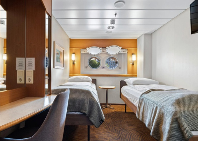 L2 - Vonkajšia kajuta Polar s obló 10-11 m². Neotvárateľné obló / môže byť obmedzený výhľad. Oddelené postele. 4. paluba. Max 2 osoby. | 4 046 € 2 023 € za osobu | ||