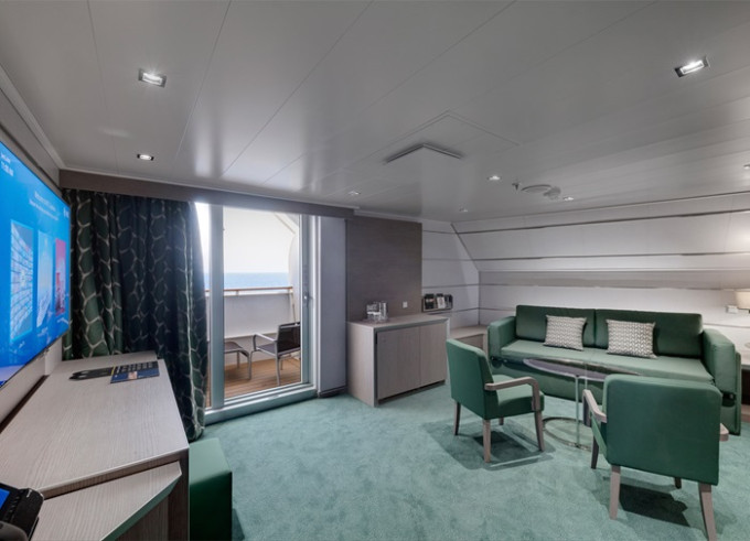 SR1 - Deluxe Suite Aurea 20 m² + balkón 8 m². 9-15. paluba. Cenový model Aurea. | 5 494 € 2 747 € za osobu | ||
