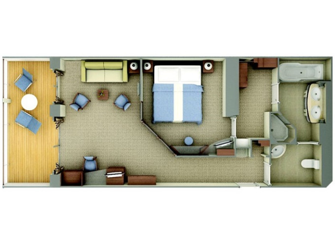 | SV - Superior Veranda Suite 26 m² + 6 m² balkón.5. až 8. paluba. Max 3 osoby. | 12 750 € 12 750 € za osobu | ||
