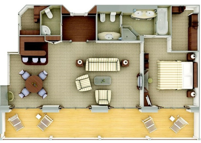 | SV - Superior Veranda Suite 26 m² + 6 m² balkón.5. až 8. paluba. Max 3 osoby. | 17 000 € 8 500 € za osobu | ||