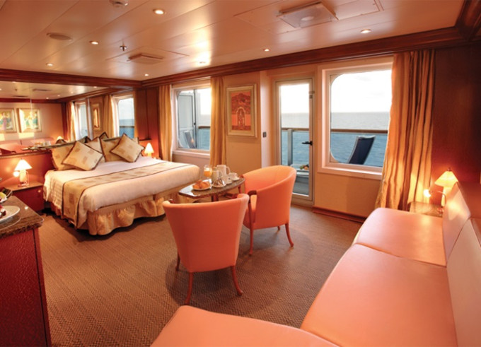 • Ubytovanie v kajute vybranej kategórie. Základné vybavenie: kúpeľňa s WC a sprchovacím kútom, 2 lôžka spojiteľné do manželskej postele, skrine, nočné stolíky, toaletný stolík a stolička, nastaviteľná klimatizácia, interaktívna satelitná TV s plochou obrazovkou, trezor, sušič na vlasy, uteráky a posteľné prádlo, Wi-Fi pripojenie (za poplatok), 24/7 kajutová služba (za poplatok).