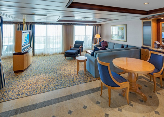 VT - Ocean View Suite / 2 spálne 54 m². Veľké neotvárateľné okná. 2 spálne, 2 kúpeľne. 10. paluba. Max 8 osôb. Výhody Suite. | 8 400 € 2 100 € za osobu |