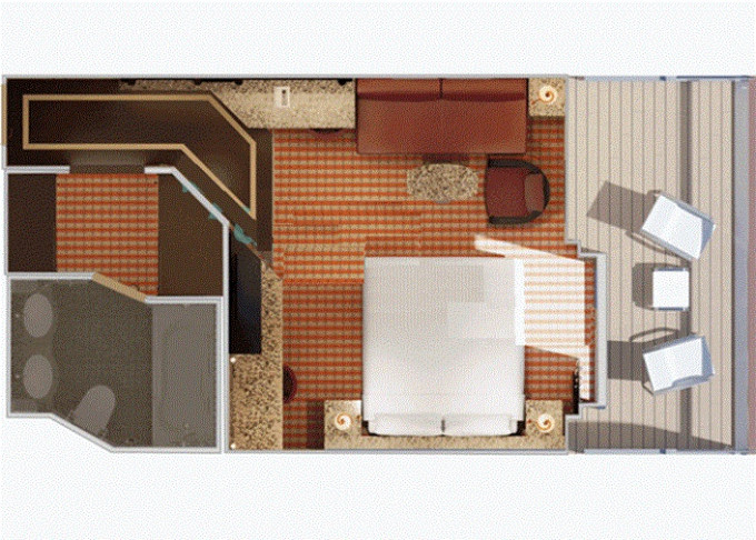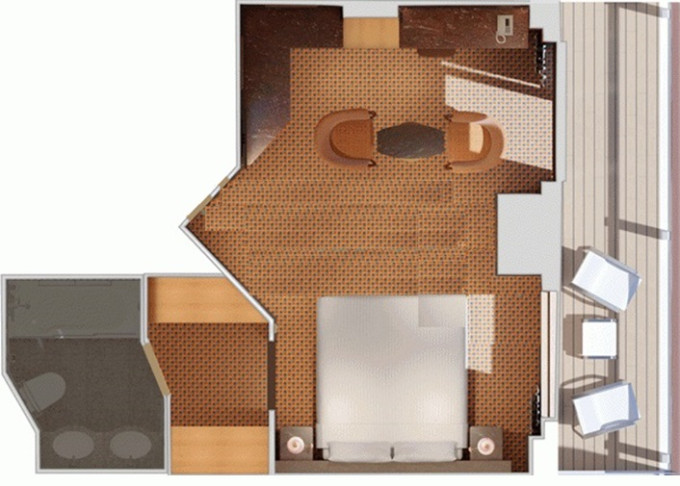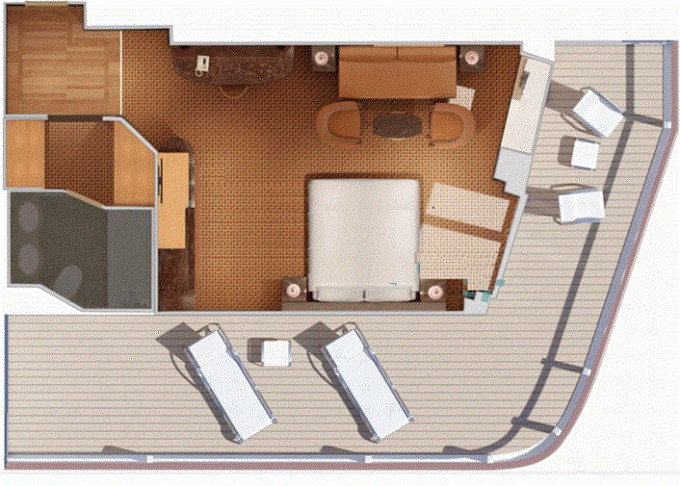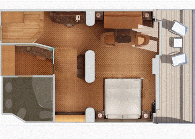 OS - Ocean Suite s balkónom cca 38 m² vrátane balkóna. 6,7,8. paluba stred. | 5 490 € 2 745 € za osobu |