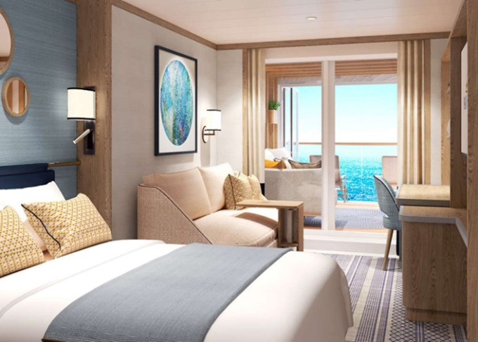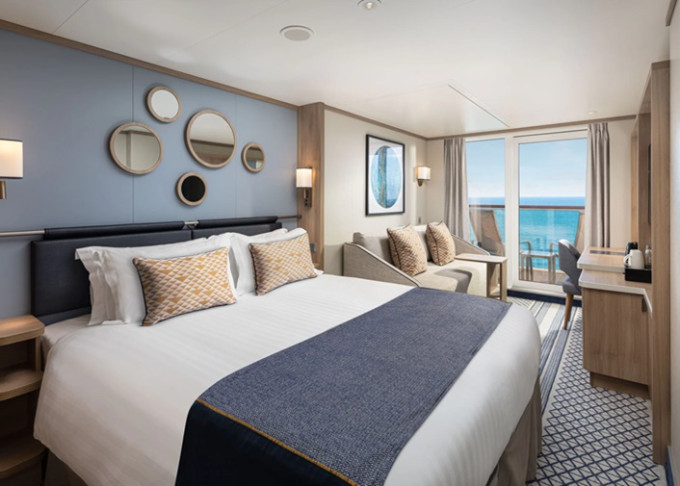 EE - Kajuta s balkónom Deluxe 19 m² + balkón 2 m². 9. až 15. paluba. | 5 520 € 2 760 € za osobu |