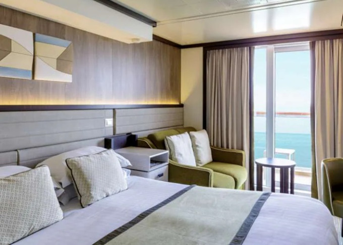 DC - Kajuta s balkónom Superior Deluxe 23 m² + balkón 3 m². Spálňa s predelenou obývacou časťou, kúpeľňa s vaňou. Výhody Superior. | 7 720 € 3 860 € za osobu | ||