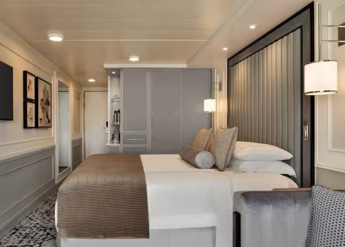 - Owner’s Suites: súkromný obed v apartmáne od 12:00 do 14:00 (voliteľné) v deň nalodenia