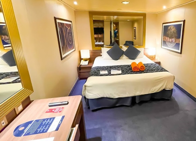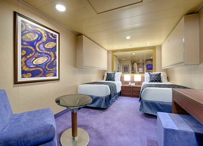 Vnútorná: 13-16m², kajuta s manželskou posteľou (na požiadanie 2 oddelené postele) a 1-2 vyklápacie horné lôžka. Klimatizácia, kúpeľňa so sprchou, toaletný stolík, interaktívna Tv, skriňa, minibar, sejf, telefón, sušič na vlasy. Internetové pripojenie (za poplatok).