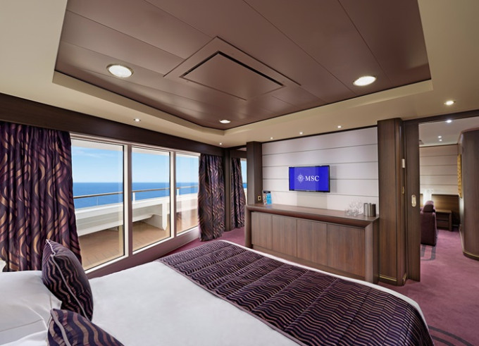 YCT - MSC Yacht Club Executive and Family Suite s balkónom 36 m² + balkón 16 m². Spálňa, oddelená obývačka, šatník, kúpeľňa s vaňou. 16. paluba. Cenový model MSC Yacht Club. | 4 218 € 1 406 € za osobu | ||