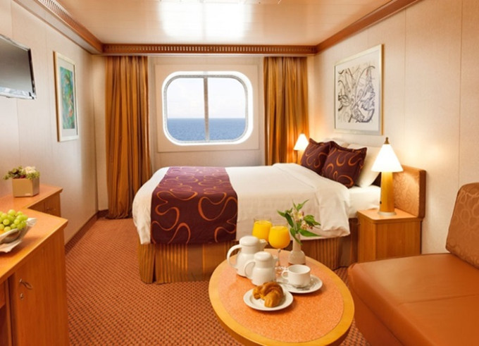 - Ubytovanie v kajute vybranej kategórie. Základné vybavenie: kúpeľňa s WC a sprchovacím kútom, 2 lôžka spojiteľné do manželskej postele, skrine, nočné stolíky, toaletný stolík a stolička, nastaviteľná klimatizácia, interaktívna satelitná TV s plochou obrazovkou, trezor, sušič na vlasy, uteráky a posteľné prádlo, Wi-Fi pripojenie (za poplatok), 24/7 kajutová služba (za poplatok).