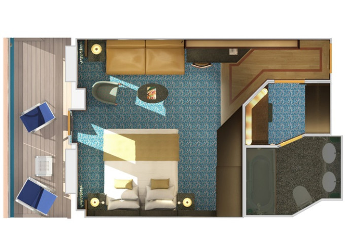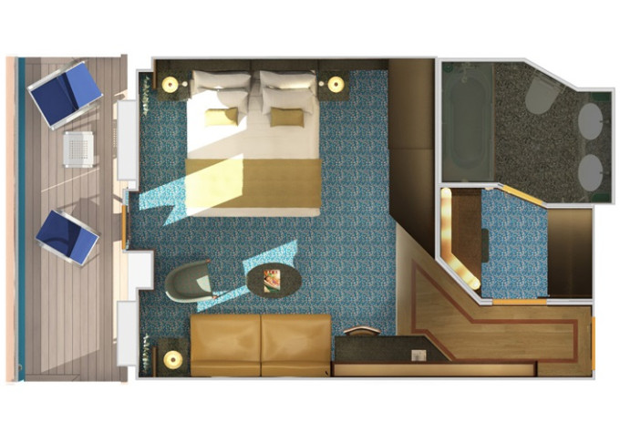 8S - Kajuta s balkónom Cloud 9 Spa 17 m² + balkón 3 m². 12. paluba vpredu. Voľný vstup do Spa a balíček Cloud 9 Spa. | 1 554 € 777 € za osobu |