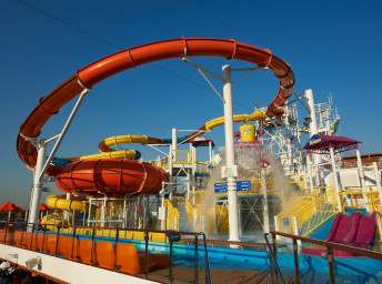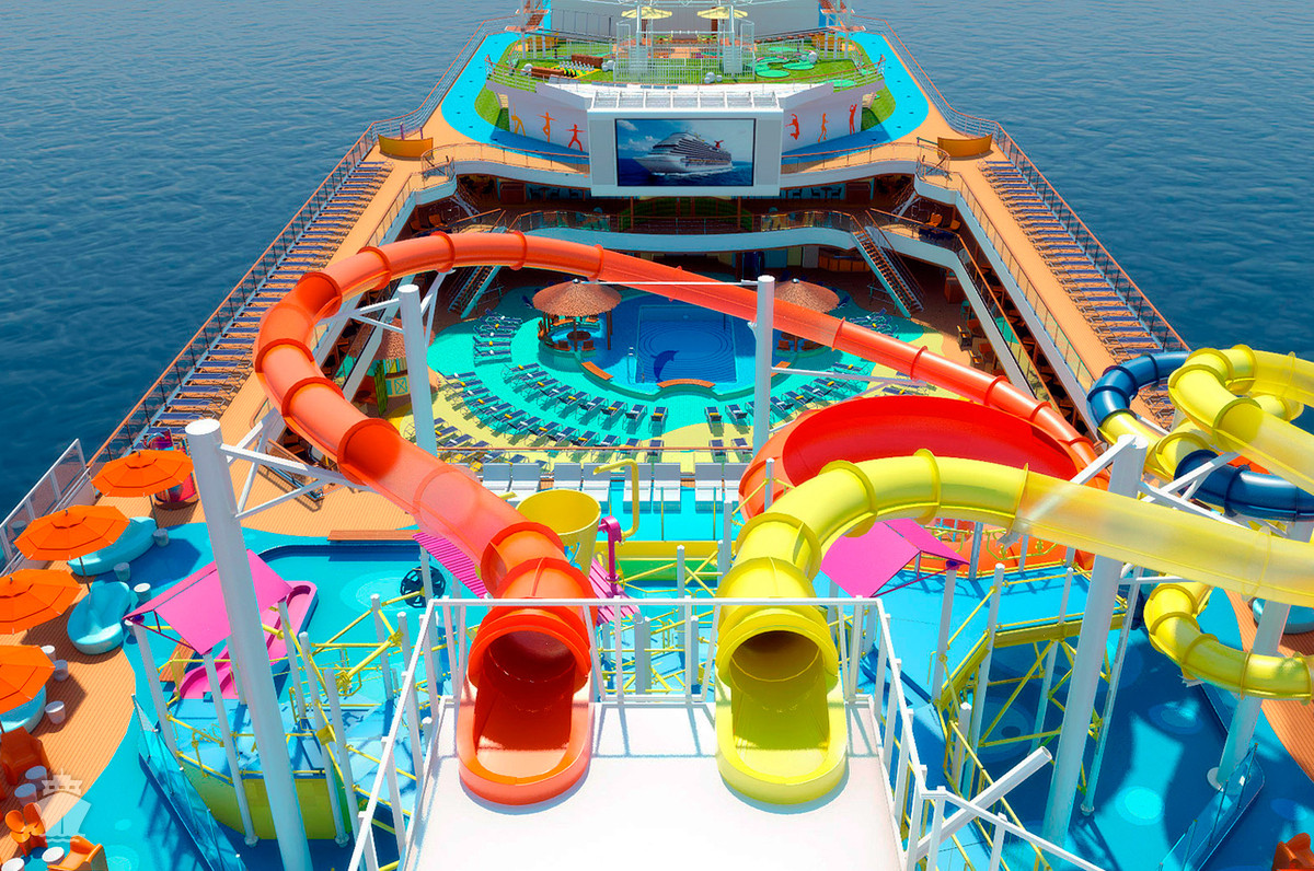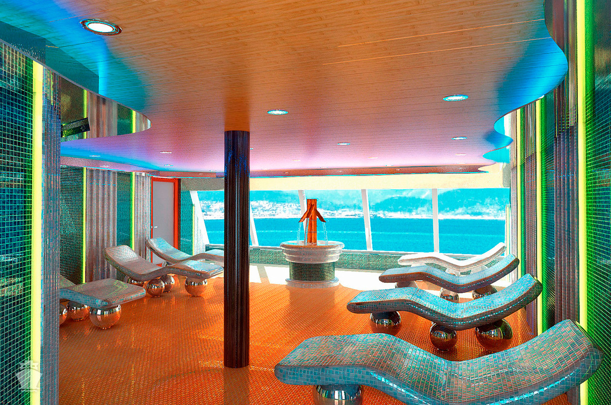 - Využívanie fitness centra, sauny, bežeckej dráhy, bazénov, víriviek, tobogánov a vodného parku (na vybraných lodiach), mini golf, basketbal, volejbal, stolný tenis, knižnica