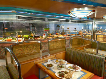 - Plná penzia v hlavných reštauráciách Main Dining Room, v bufetových 24/7 reštauráciách Lido, v 24/7 pizzerii