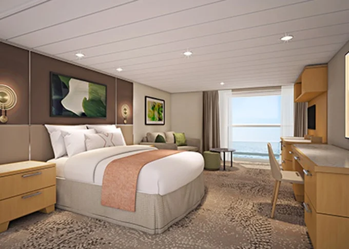 PD - Deluxe Panoramic Ocean View Suite 34 m². 12. paluba vpredu. Max 3 osoby. Výhody Suite The Retreat. | 24 236 € 6 059 € za osobu | ||