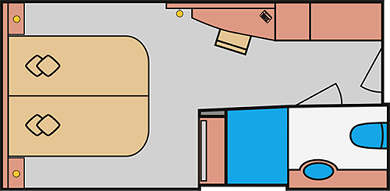 IB - Vnútorná kajuta PREMIUM 16 m². 4,5. paluba. Max 4 osoby. Cenový model Premium. | 1 560 € 780 € za osobu | ||