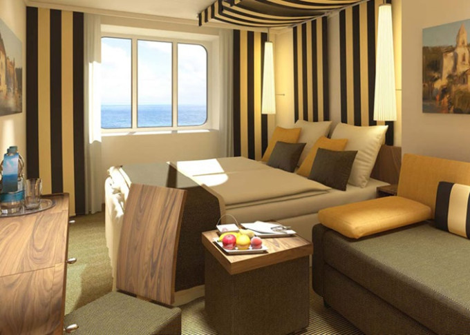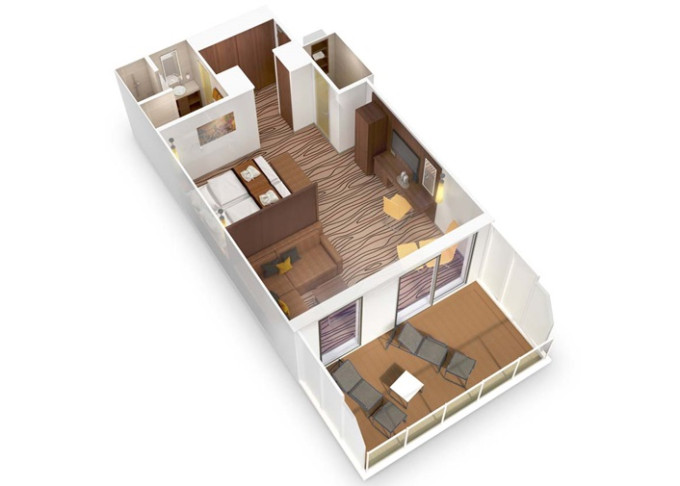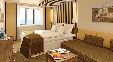 JA - Junior Suite PREMIUM od 32 m² + balkón od 12 m². 8,9. paluba. Max 4 osoby. Cenový model Premium + výhody Junior Suite. | 3 470 € 1 735 € za osobu |