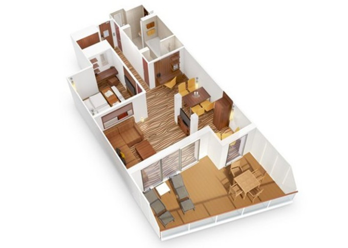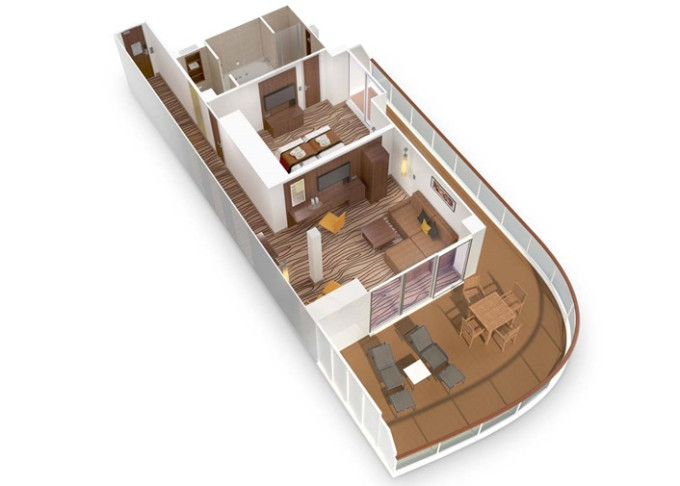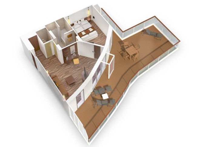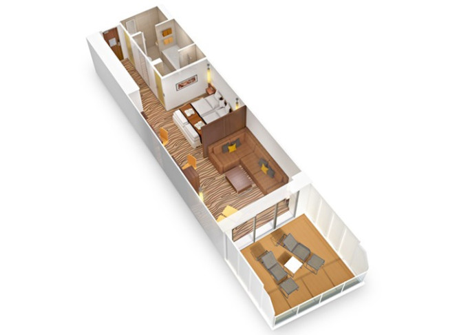 SA - Suite Deluxe PREMIUM 43 m² / 72 m² balkón. 12. paluba. Max 4 osoby. Cenový model Premium + výhody Suite. | 5 050 € 2 525 € za osobu |