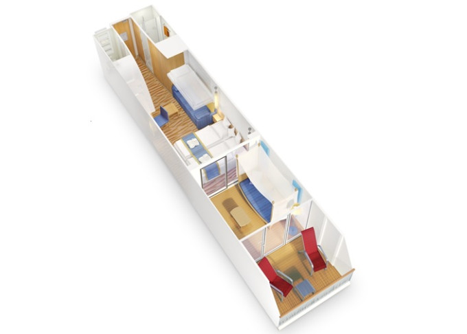 VH - Kajuta s verandou PREMIUM od 16 m² + balkón 6 m². 5,9,10,11. paluba. Max 2 osoby. Cenový model Premium. | 1 930 € 965 € za osobu |