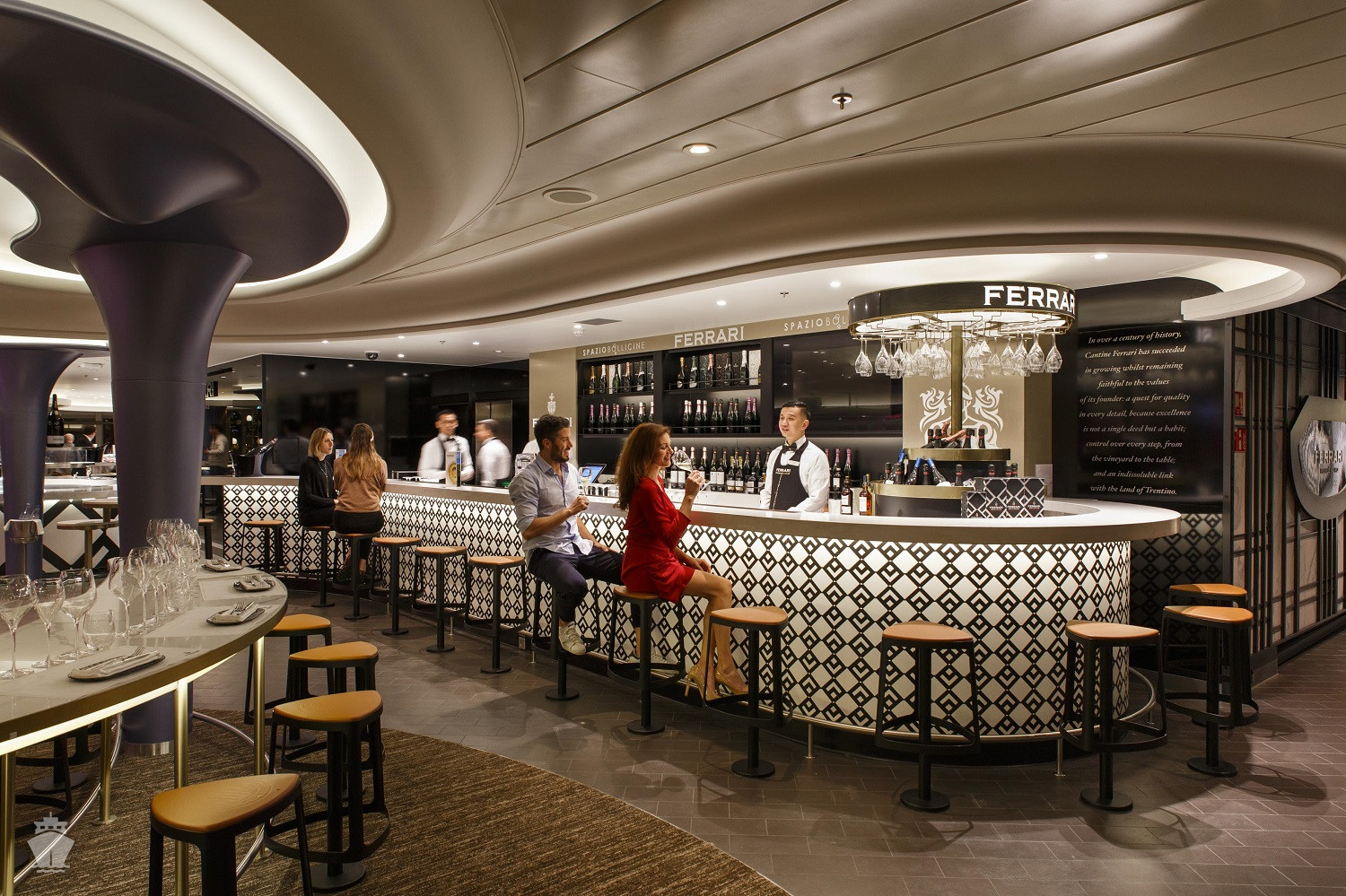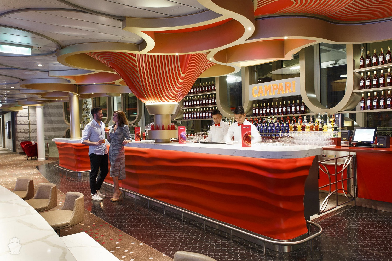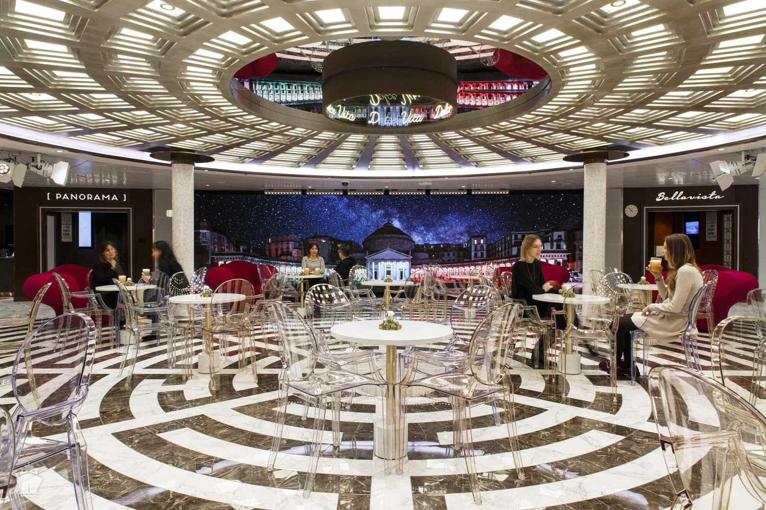 Terrazza Superba Bar na 7. palube na korme, benátsky Bacaro Bar, Bar Spazio Bollicine, Campari Spritz Bar, obľúbená zmrzlináreň - čokoládovňa Gellateria Amarillo.