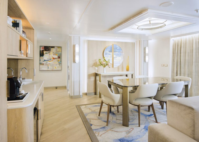 S0 - Signature Sky Suite 117 m² (vrátane balkónu). 16. paluba na korme. Max 5 osôb. Šatník, 2 spálne, obývačka s jedálenskou časťou, 2 kúpeľne (jedna so sprchou), šatník, kávovar Nespresso. Výhody Signature Collection. | 23 466 € 11 733 € za osobu |