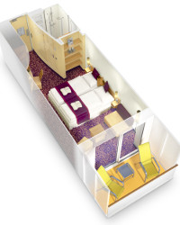 CA - Vonkajšia kajuta PREMIUM / obmedzený výhľad od 14 m². Neotvárateľné okno / obmedzený výhľad. Max 4 osoby. Cenový model Premium. | 6 550 € 3 275 € za osobu | ||