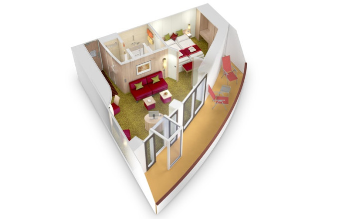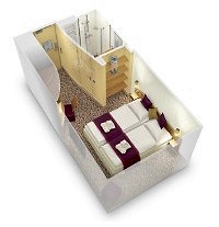 BP - Kajuta s balkónom Panorama PREMIUM 21,5 m² / balkón 4,5 m². Max 3 osoby. Cenový model Premium + výhody Suite. | 10 390 € 5 195 € za osobu | ||