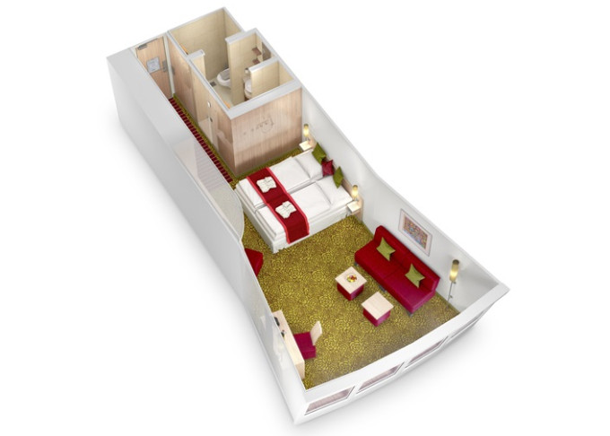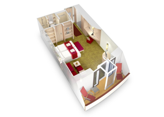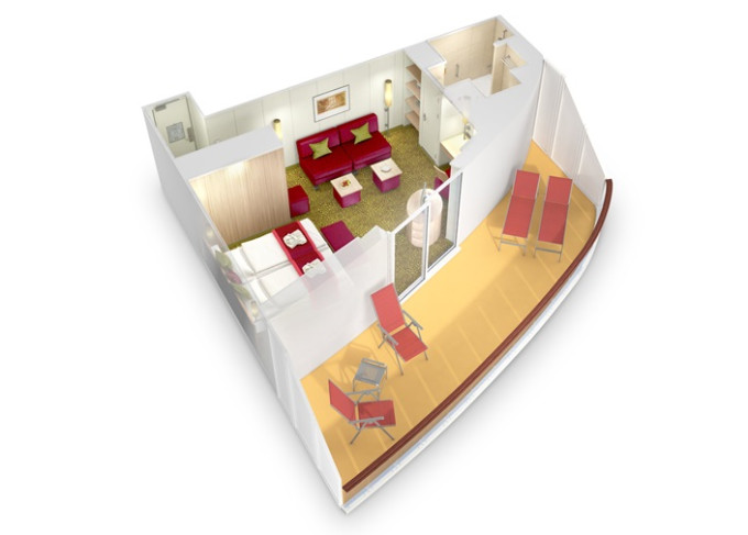 SD - Junior Suite PREMIUM od 34 m² / balkón 10 m². 7, 8, 9. paluba. Max 4 osoby. Cenový model Premium + výhody Junior Suite. 3 830 € 1 915 € za osobu