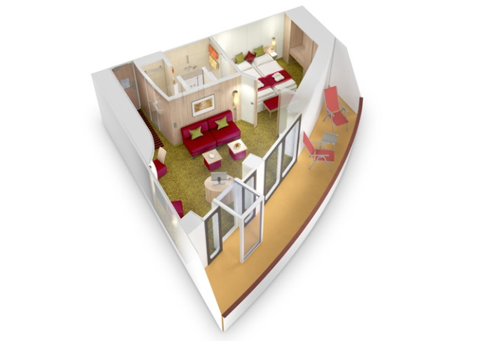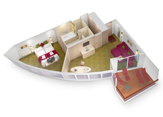 SX - Suite Panorama Deluxe PREMIUM 42 m² + balkón 12 m². Vírivka. 12. paluba. Max 4 osoby. Cenový model Premium + výhody Suite. 5 070 € 2 535 € za osobu