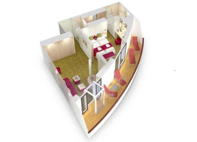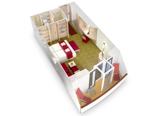 BP - Kajuta s balkónom Panorama PREMIUM 21,5 m² / balkón 4,5 m². Max 3 osoby. Cenový model Premium + výhody Suite. | 5 360 € 2 680 € za osobu | ||