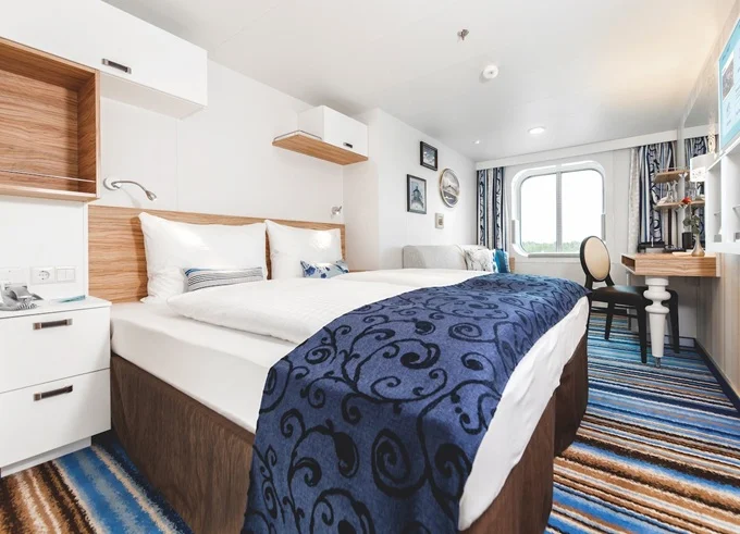 | AUBO - Kajuta s oknom kat. B 17 m². Neotvárateľné okno. 3. paluba. Max 4 osoby. | 2 068 € 1 034 € za osobu | ||