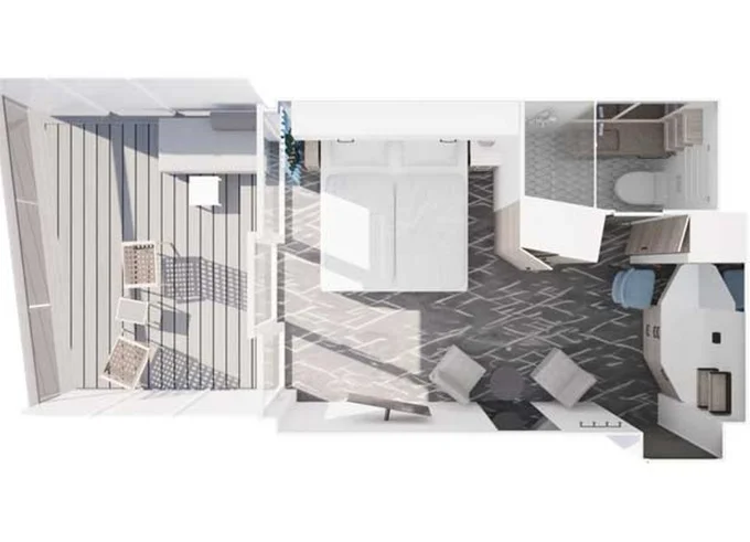| VEPO - Kajuta s terasou Premium 30 m² + balkón 35 m² so stoličkami, ležadlami a hojdacou sieťou. 15. paluba. Max 2 osoby. | 5 198 € 2 599 € za osobu | ||