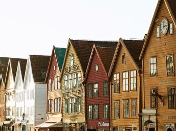 Bryggen / Tyskebryggen (Svetové Dedičstvo UNESCO). Historická časť mesta s históriou siahajúcou do 11. storočia. Farebné drevené hanzovné domy s typickými vysokými štítmi. Kedysi obydlia rybárov a sklady, dnes sa v nich nachádzajú obchodíky so suvenírmi, galérie umenia a reštaurácie. Vzdialenosť od prístavu: 500 m