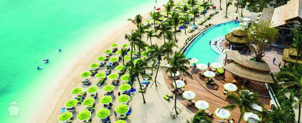 Pešie vzdialenosti nie sú náročné: z Arrival Plaza do Thrill Waterpark 3 min, na Harbor Beach 5 min, k Oasis Lagoon 8 min, na Chill Island 5 min, k Breezy Bay na Chill Island 10 min, na pláž South Beach 10 min, ku klubu Coco Beach Club 10 min.