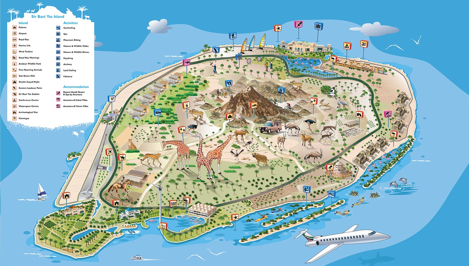 Viac ako polovicu tohto neuveriteľného ostrova tvorí Arabský prírodný park, ktorý je jednou z najväčších rezervácií voľne žijúcich živočíchov v regióne a je domovom viac ako 17.000 voľne žijúcich zvierat. Hostia si tu môžu vychutnať safari v divočine v sprievode odborných sprievodcov.